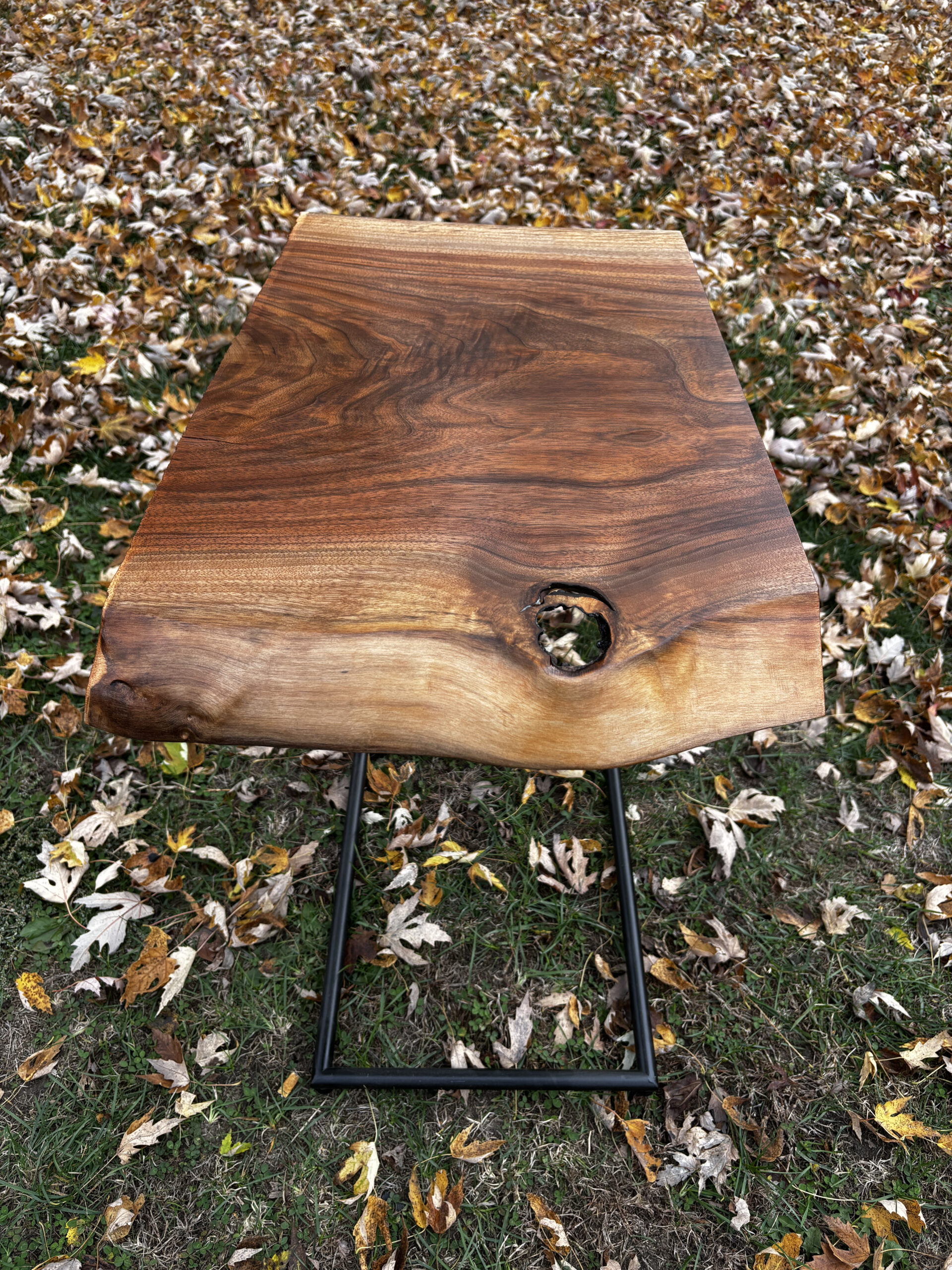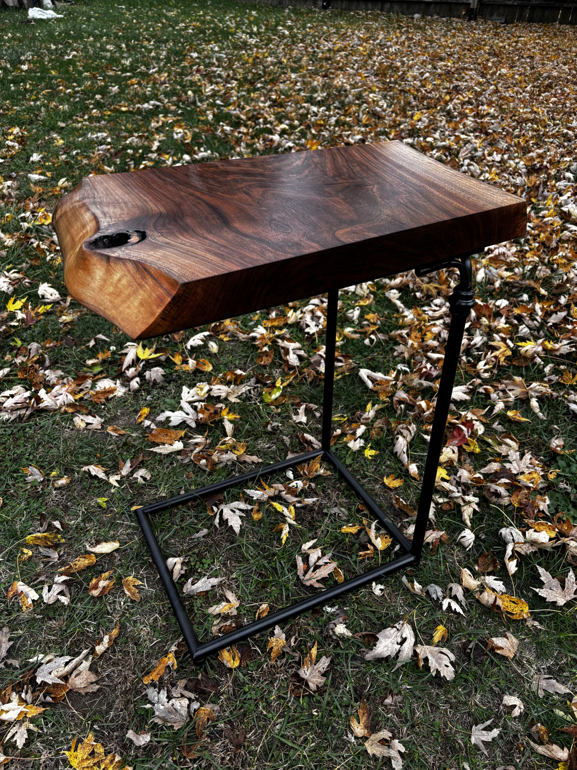 Black Walnut Live Edge Side Table With Black Metal Base