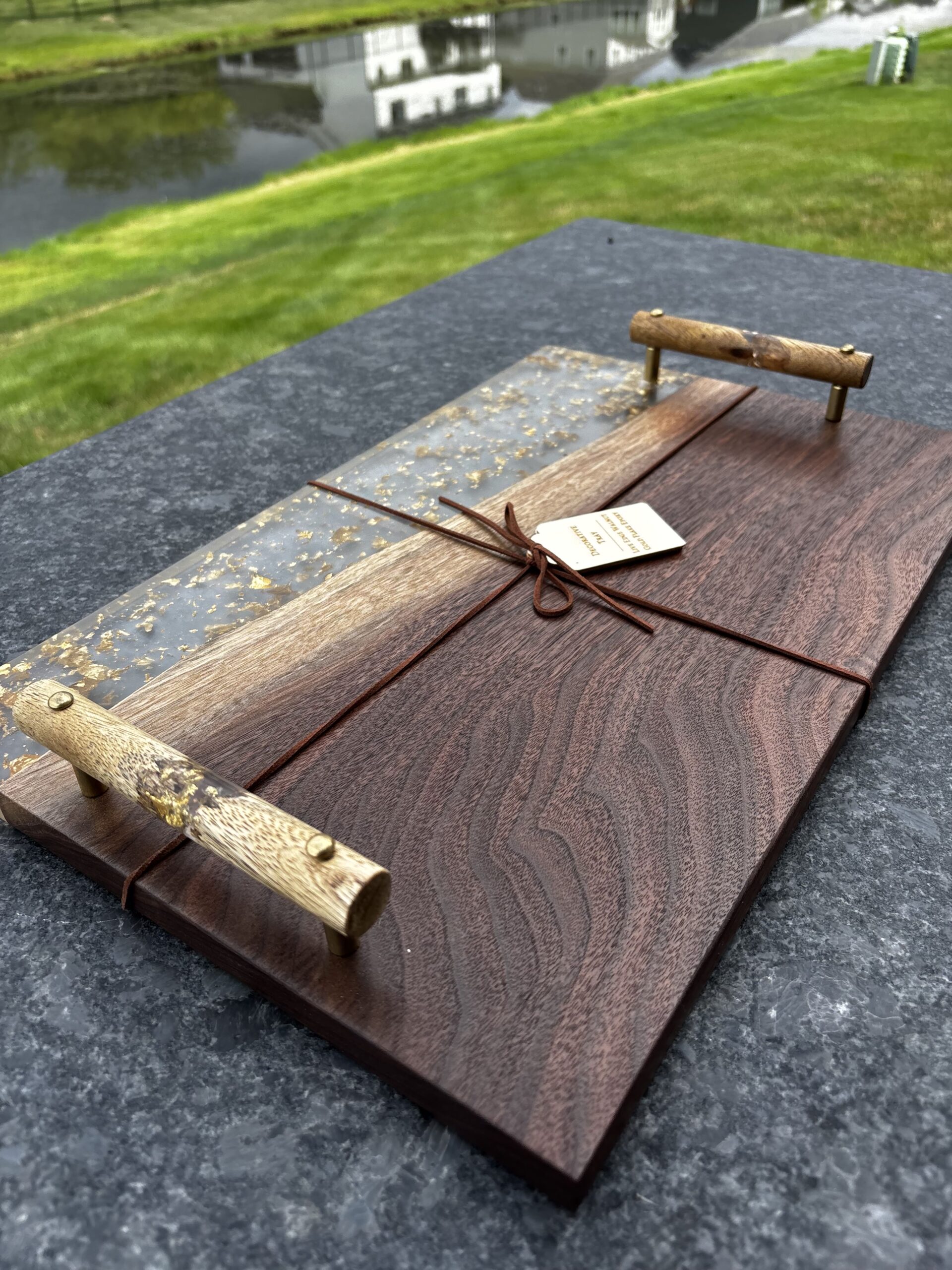 / Black Walnut with Gold Flake Epoxy Serving Tray