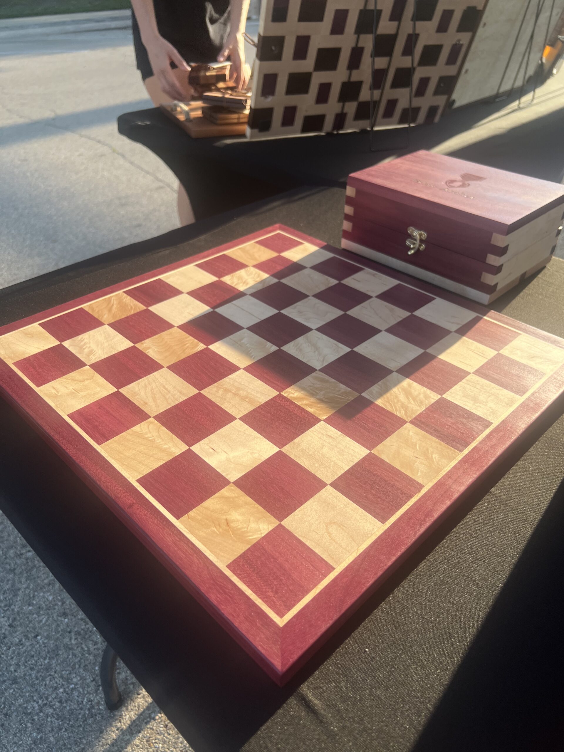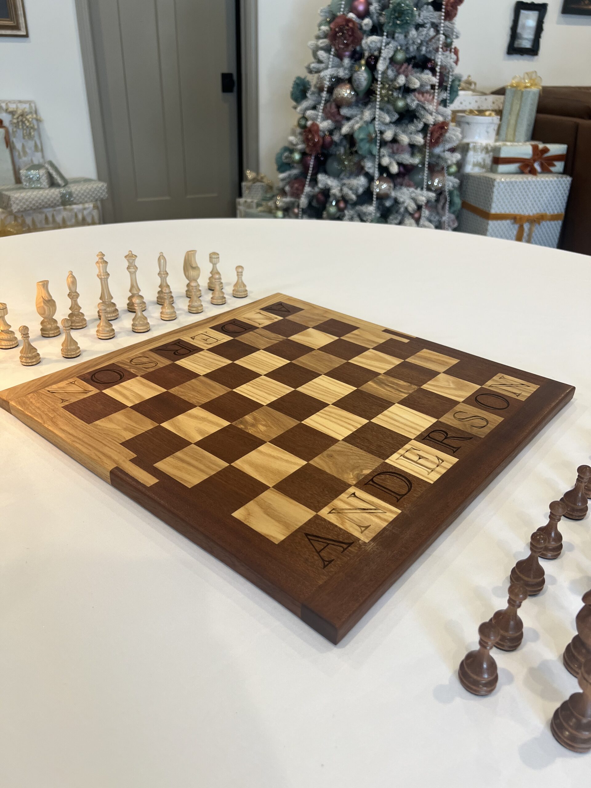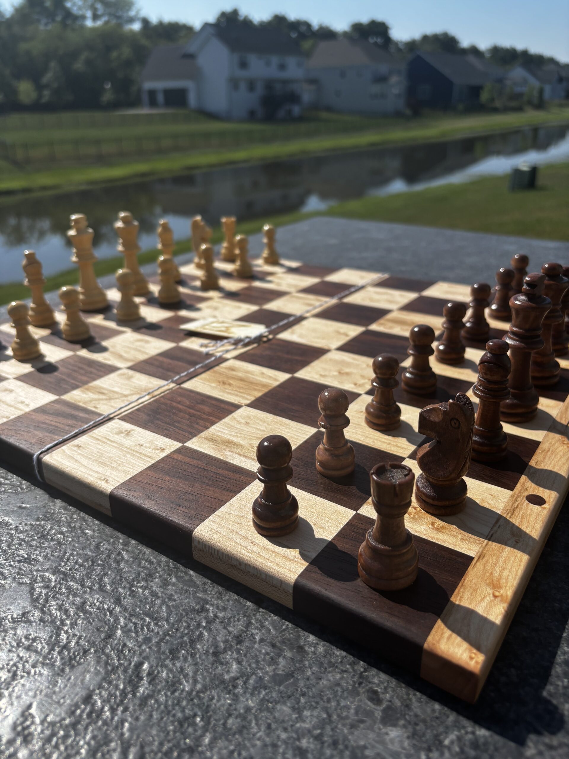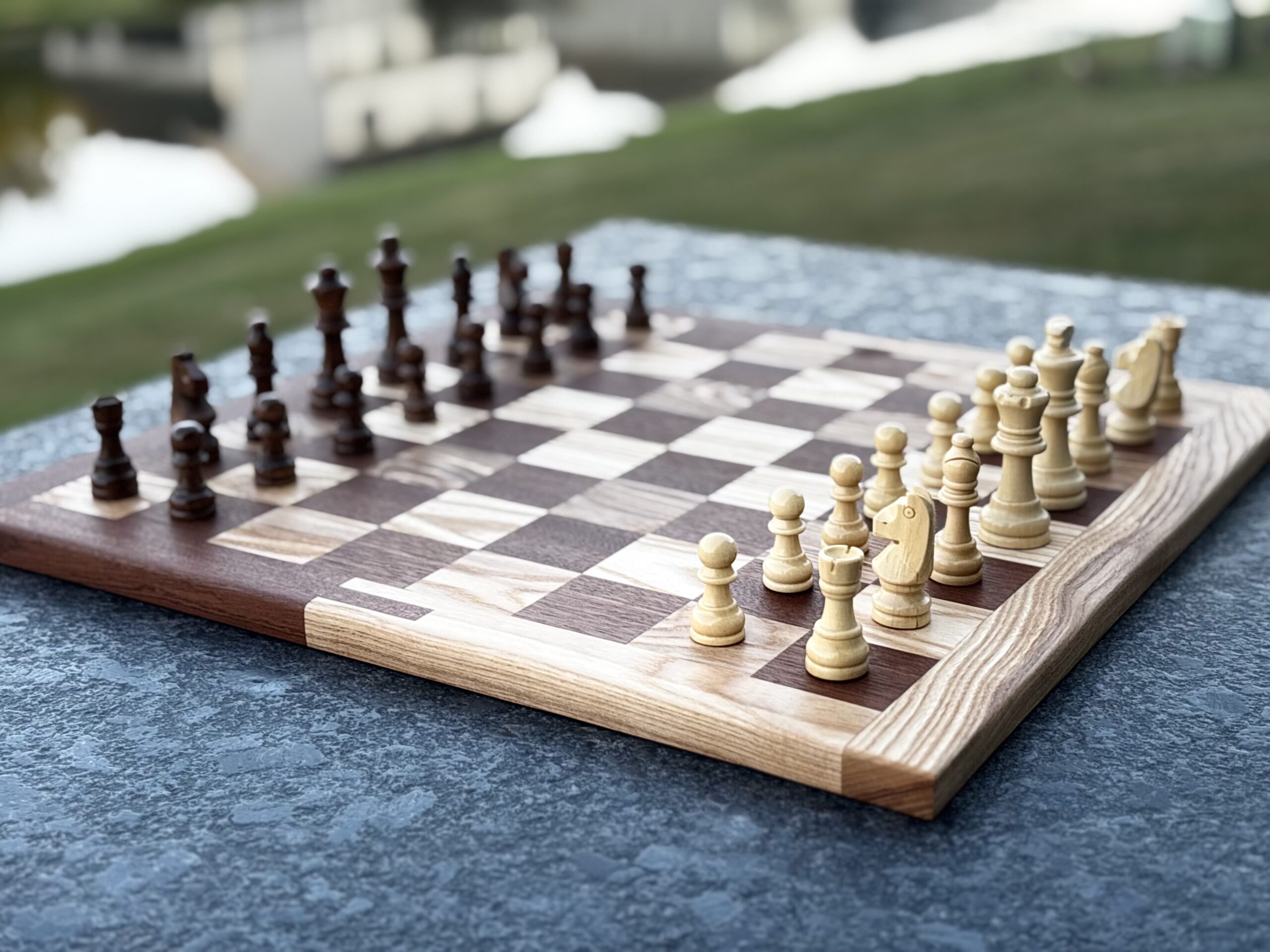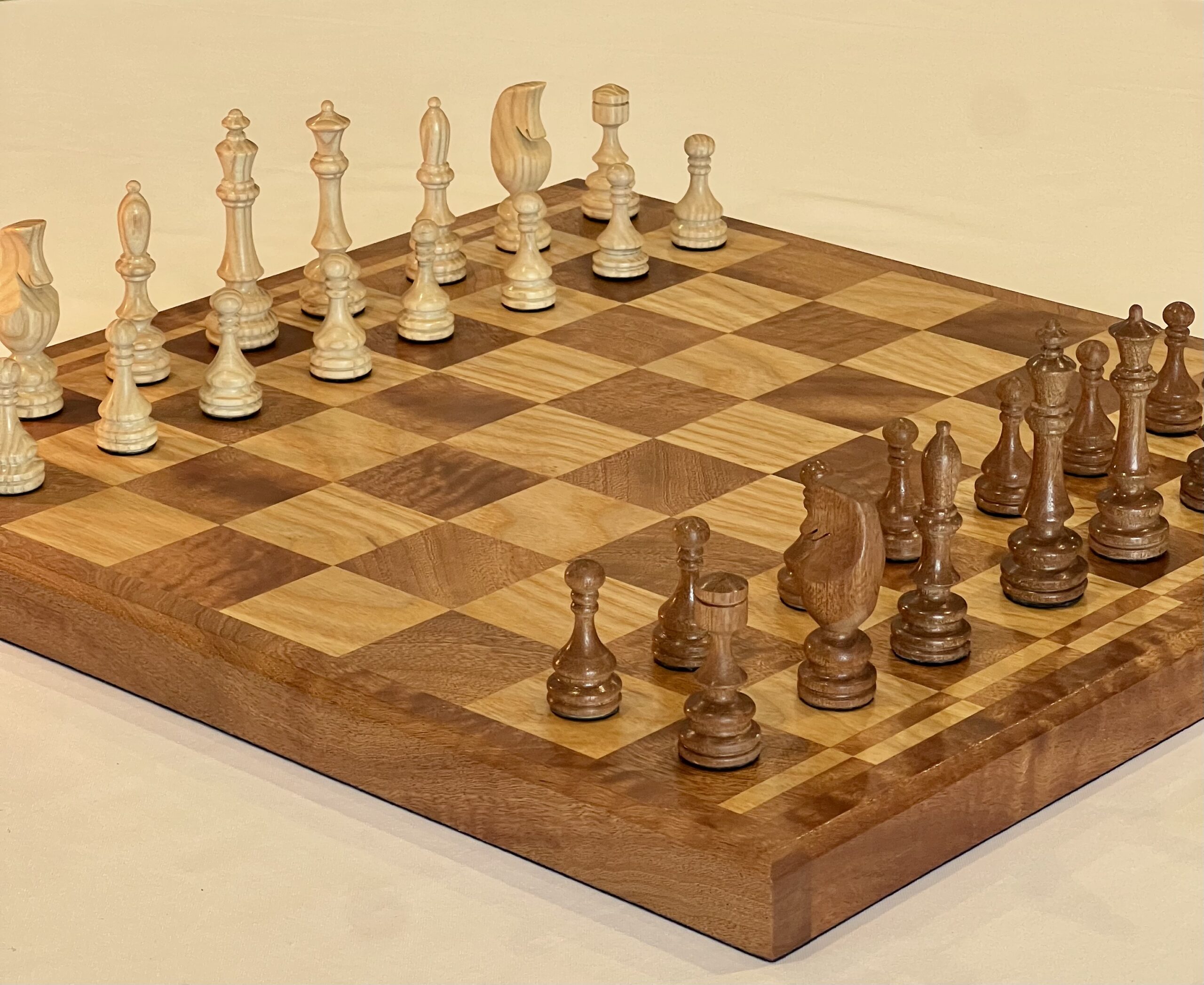 Tournament-sized chess board in the wood combination and border style of your choice.