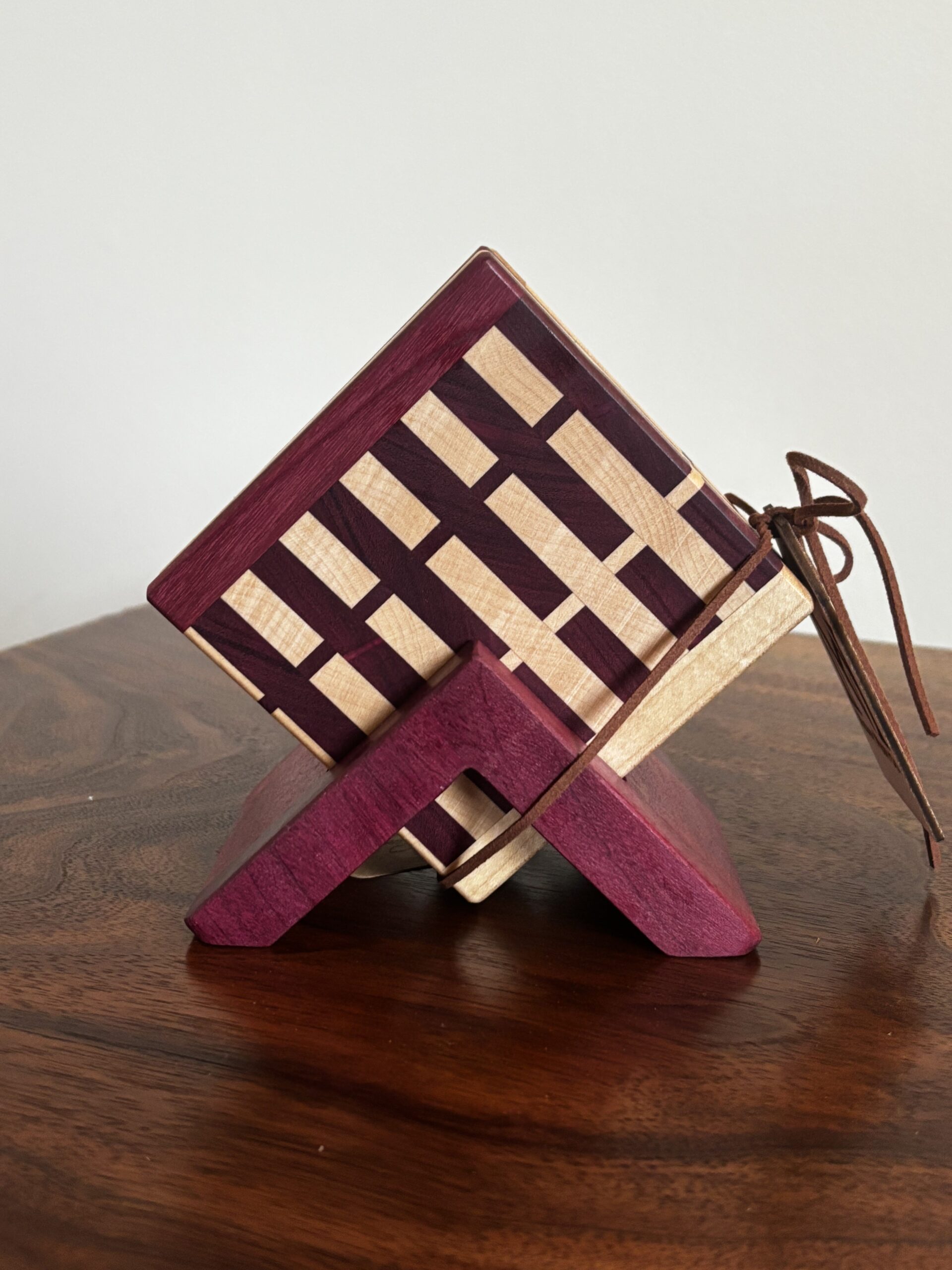 Set of 4 Purple Heart and Maple Coasters with Purple Heart Coaster Stand